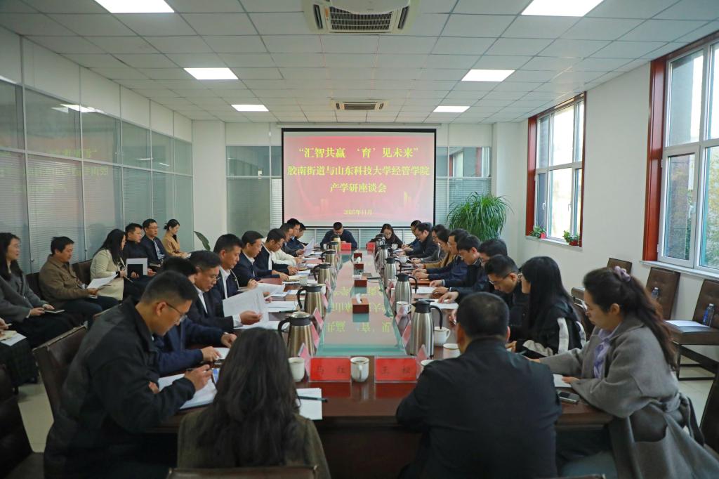 胶南街道党工委书记张朝洋介绍了胶南街道的基本概况、经济发展现状及产业布局特点,以及近年来在招商引资、产业集聚、优化营商环境等方面取得显著成效,当前正聚焦人才引进、实训实践基地建设、技术创新支持、项目合作对接等重点工作,全力推动辖区产业高质量发展。他表示,街道将充分发挥桥梁纽带作用,积极搭建校地企沟通合作平台,助力学院科研成果转化落地,支持企业借助高校资源实现转型升级。