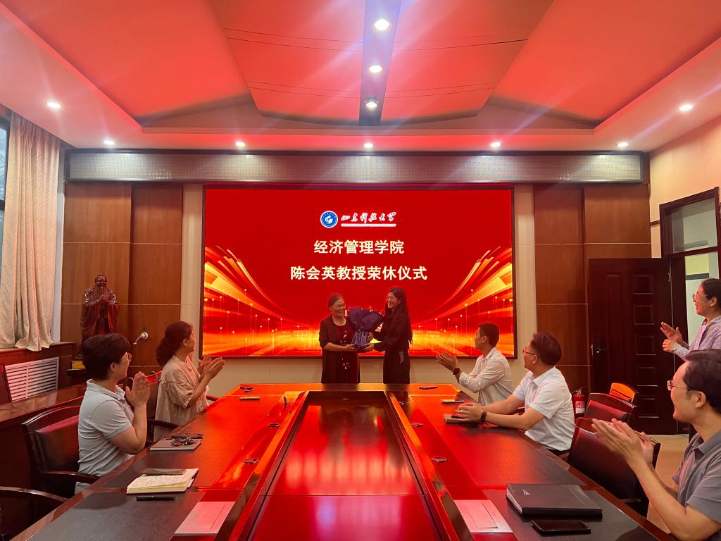 近日,经济管理学院在309会议室为陈会英老师举行荣休仪式。学院领导班子成员及教师代表共同参加。