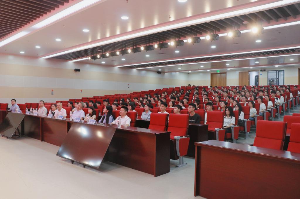 院党委书记庄兴华致辞,代表全院师生对2025级新同学的到来表示欢迎与祝贺,并提出期望:一要以学术为本,勇于追求真理,敢于提出真问题、深耕真领域,在持之以恒的探索中接近真理;二要以思考为帆,培育独立精神,养成批判性思维和系统思考的能力,在广泛阅读和深度反思中形成自己的见解;三要以兴趣为舵,激发内在潜能,主动探索个人兴趣与能力所在,找到学术与志业的结合点,把“要我做”变为“我要做”;四要以主动为桨,善用资源平台,主动争取科研项目、积极参与学术交流、勇敢拓展对外合作,善用导师、实验室、图书馆以及校企合作等各类资源;五要以坚韧为灯,不畏低谷长夜,学会调整心态、积极寻求支持、锤炼抗挫能力。